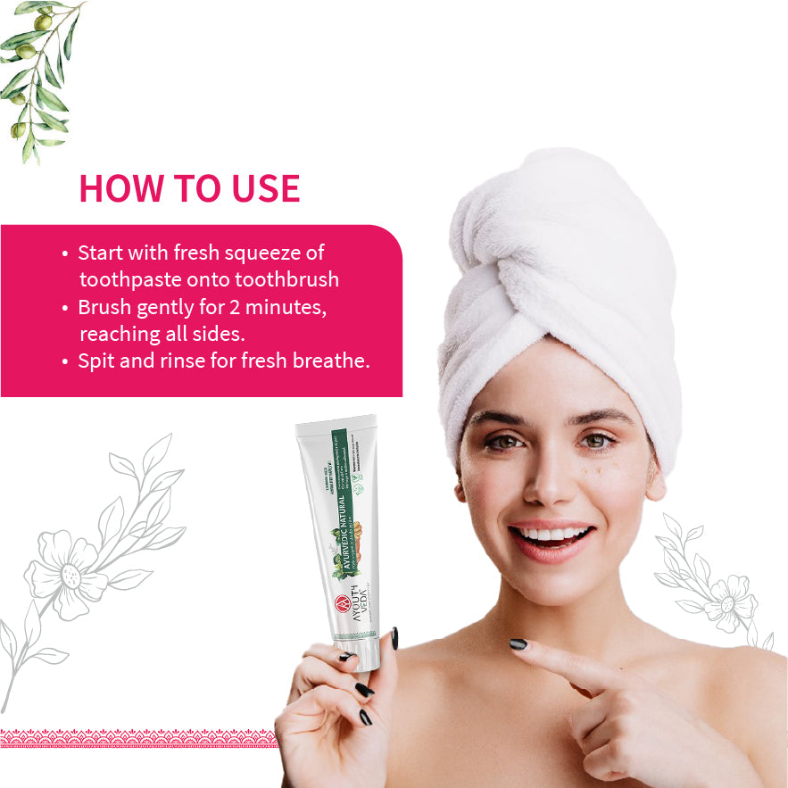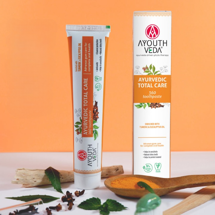 AYOUTHVEDA Ayurvedic Complete Oral Care 360 Toothpaste is infused with carefully selected herbs to promote comprehensive dental wellness, offering a range of benefits to safeguard your teeth, enamel, and gums.