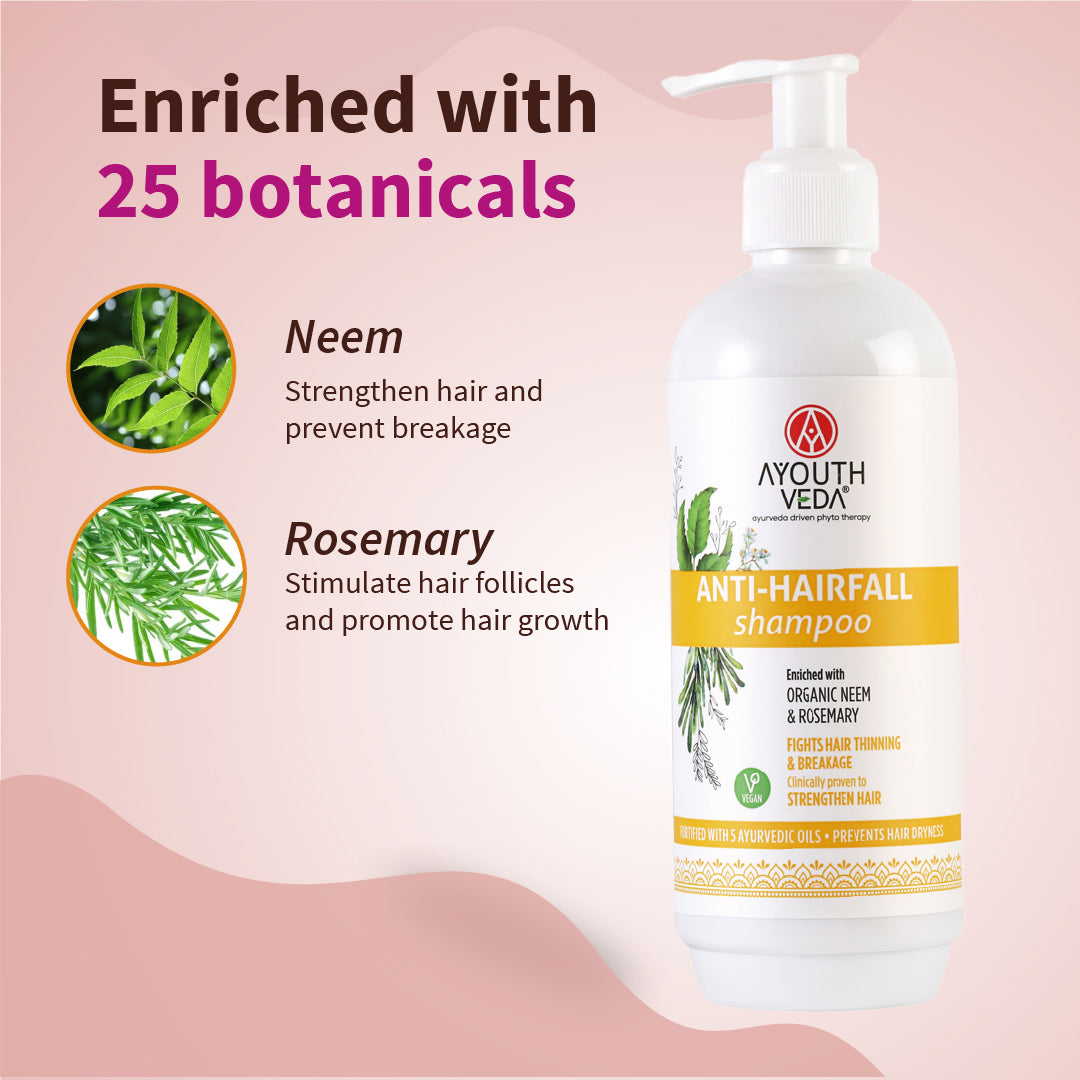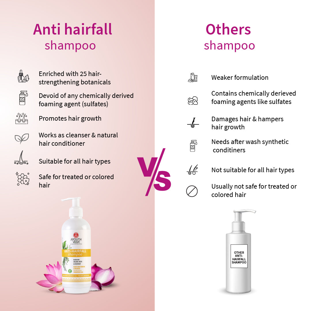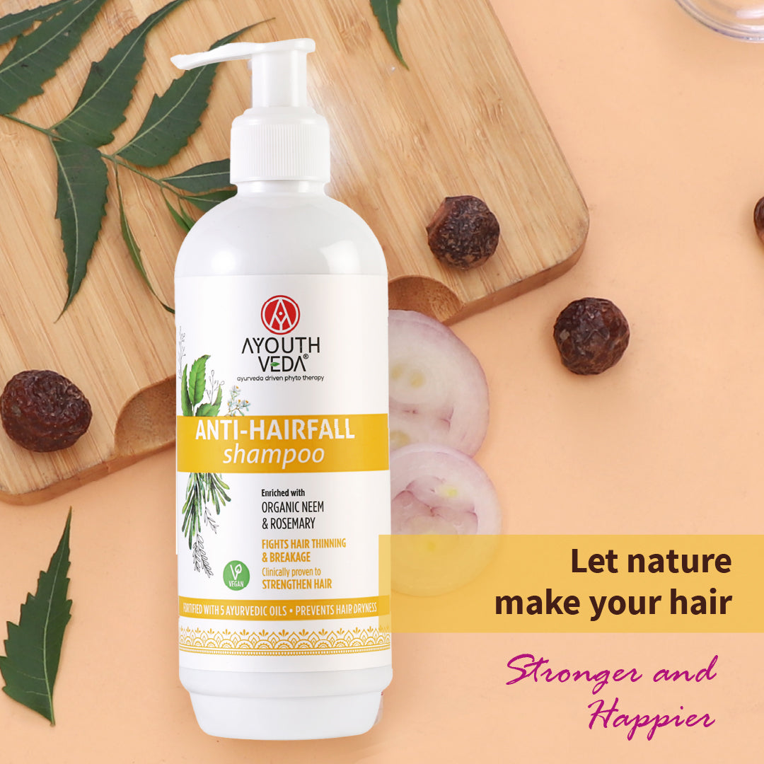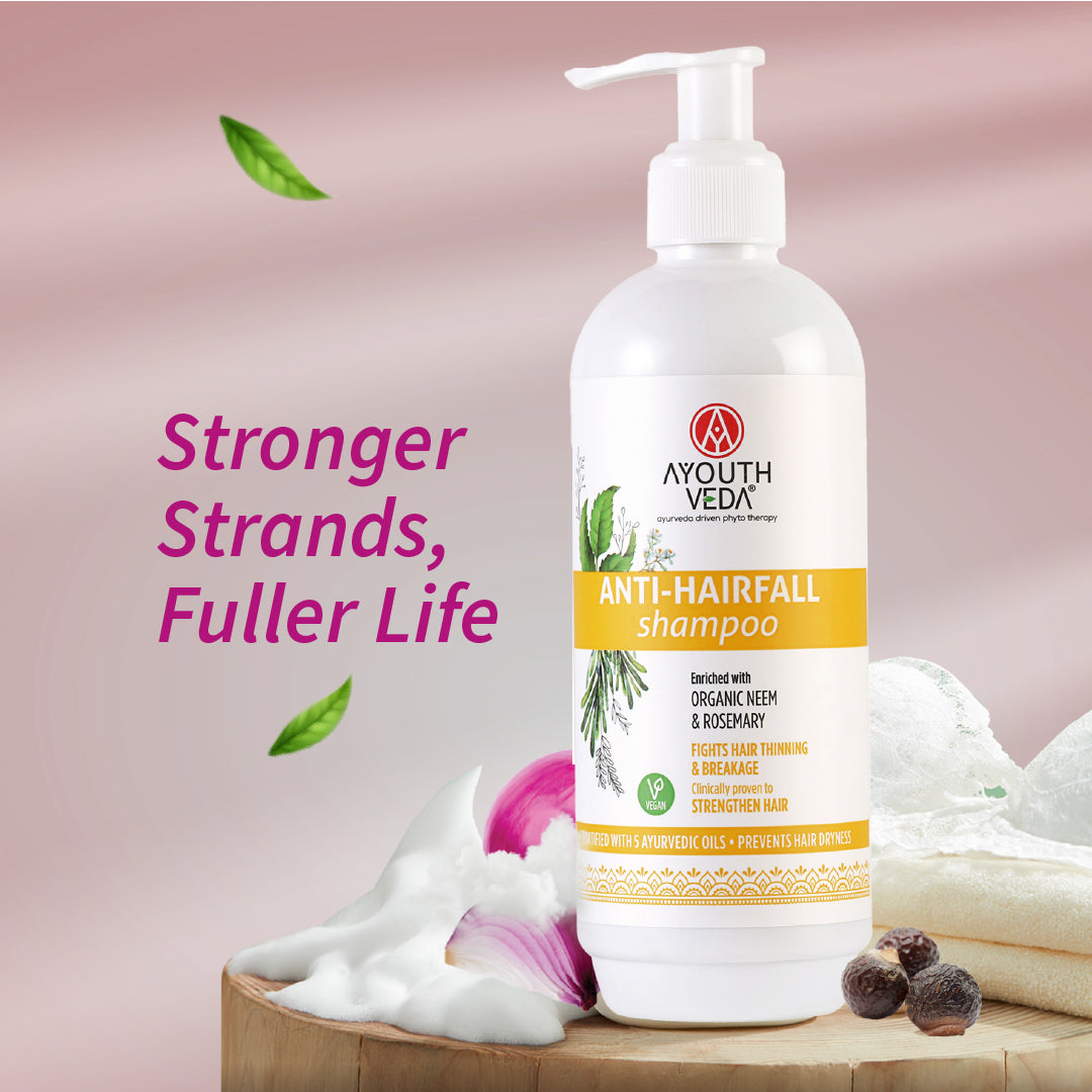 AYOUTHVEDA Anti-Hair Fall Shampoo offers a comprehensive solution for achieving long, healthy, and lustrous hair. This all-in-one formula effectively controls hair fall, hydrates the scalp, and strengthens hair follicles from the core.