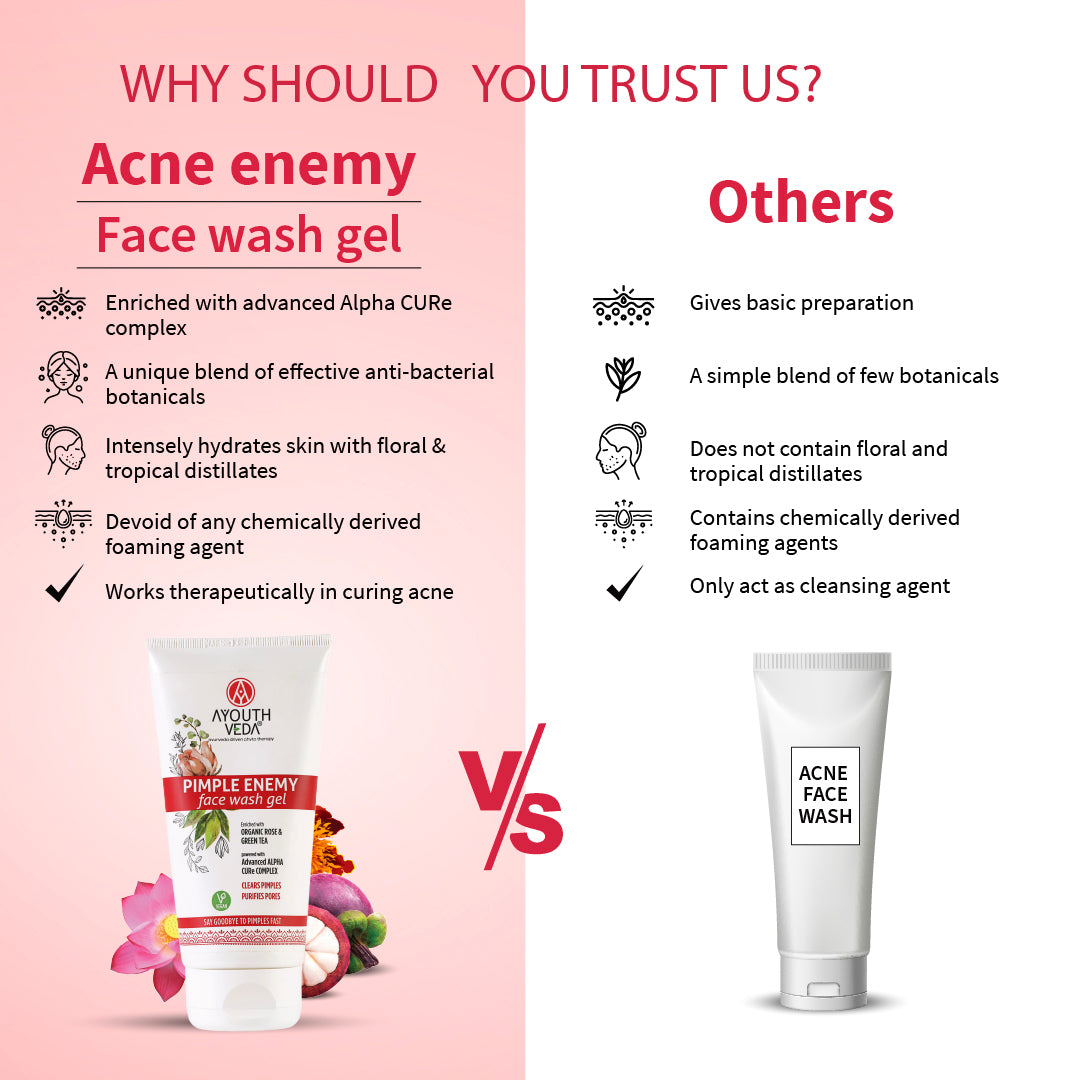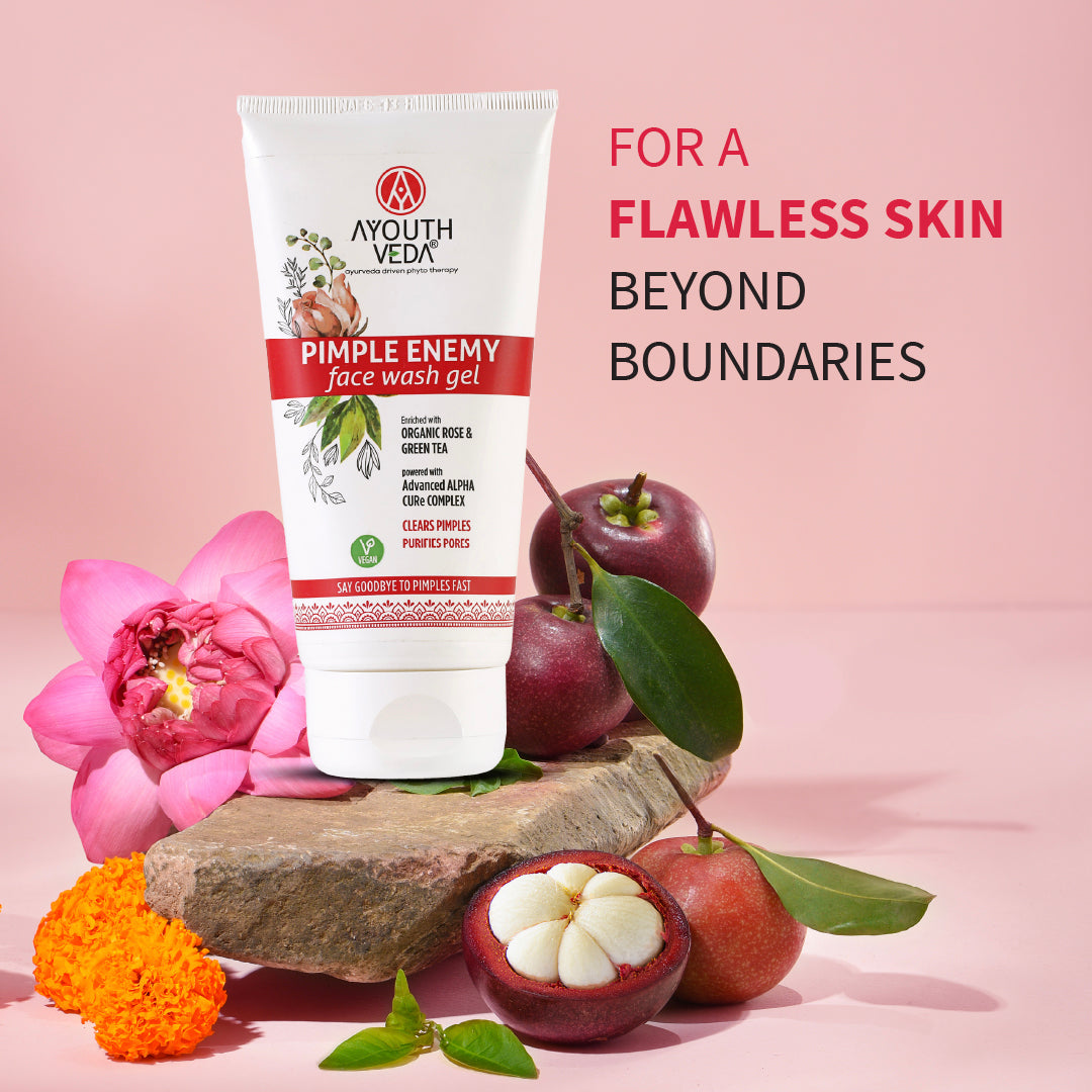 AYOUTHVEDA Pimple Enemy Face Wash Gel, infused with the potent Alpha-CURe Complex, is your ally in battling pimples and preventing blemishes.